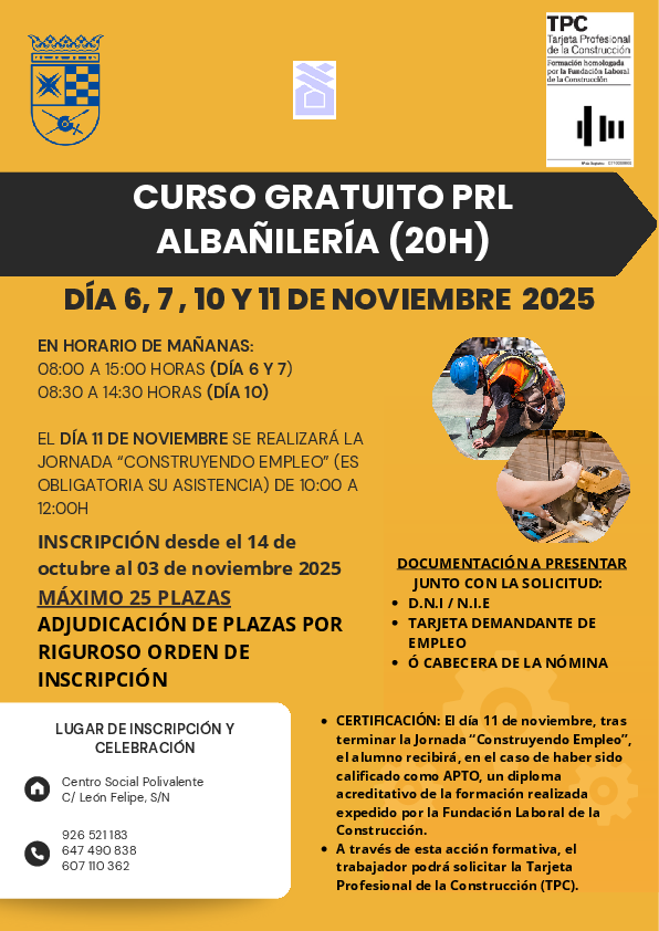 El 8 de octubre de 2025 de 11:00 a 13:00 horas en el Centro Social.