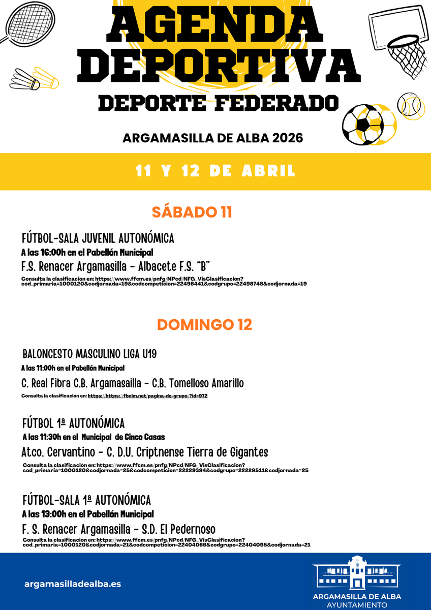 Agenda Deportiva 11 y 12 de abril de 2026