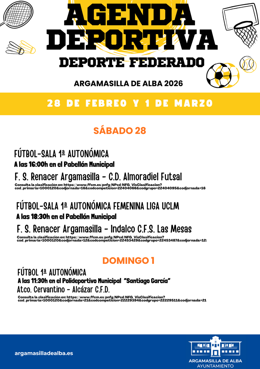 Agenda Deportiva 28 de febrero y 1 de marzo de 2026