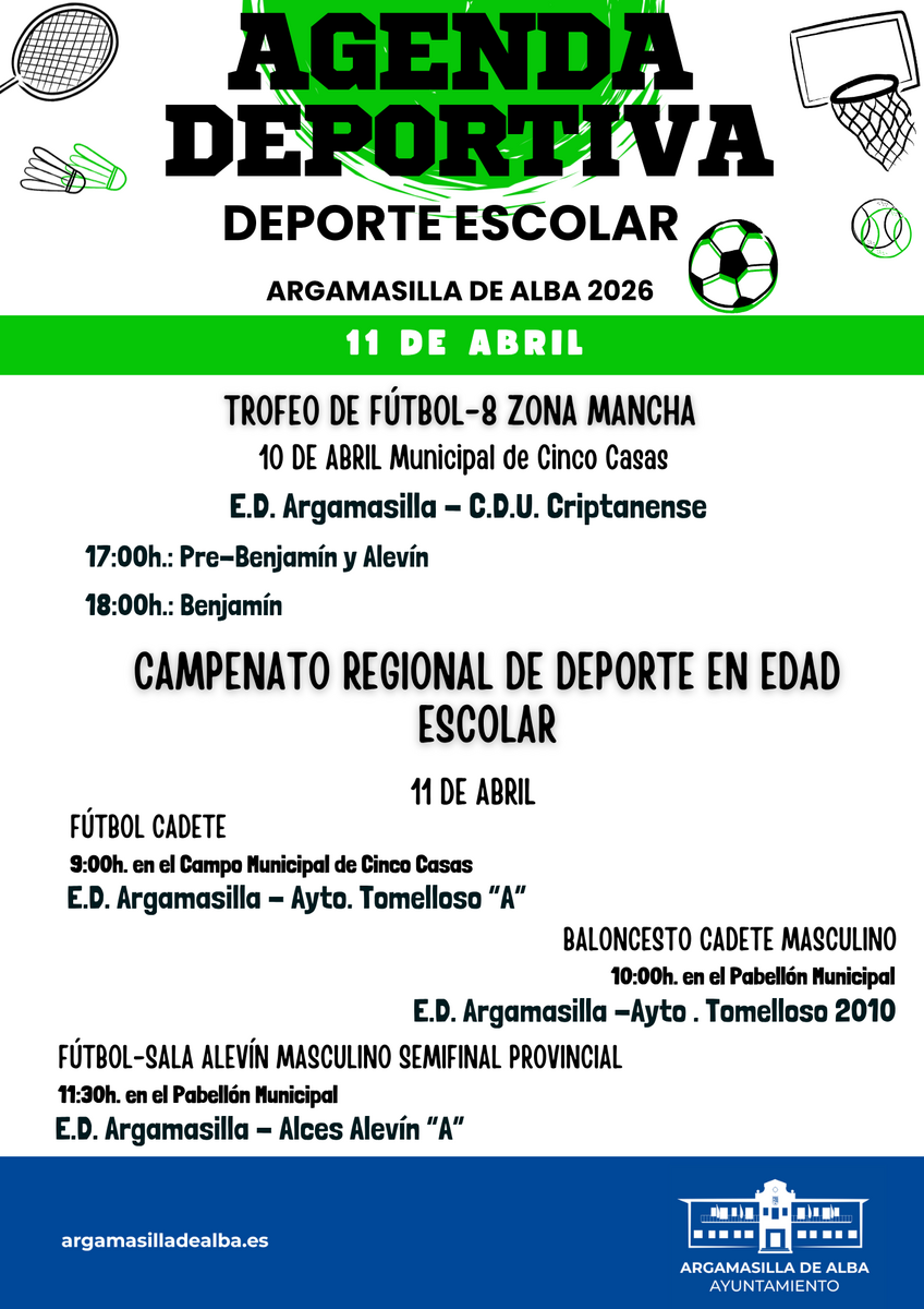 Agenda Deportiva Escolar 10 y 11 de abril de 2026