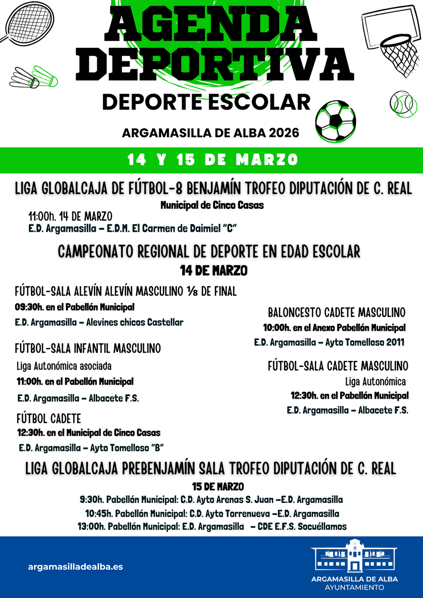 Agenda Deportiva Escolar 14 y 15 de marzo de 2026