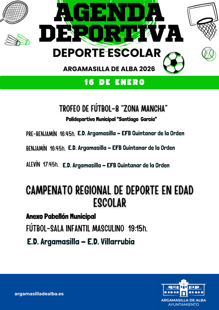 Agenda Deportiva Escolar 16 de enero de 2026