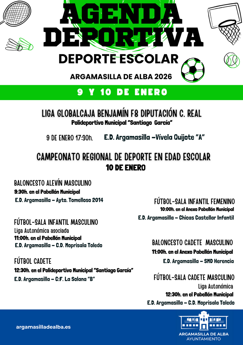 Agenda Deportiva Escolar 9 y 10 de enero de 2026
