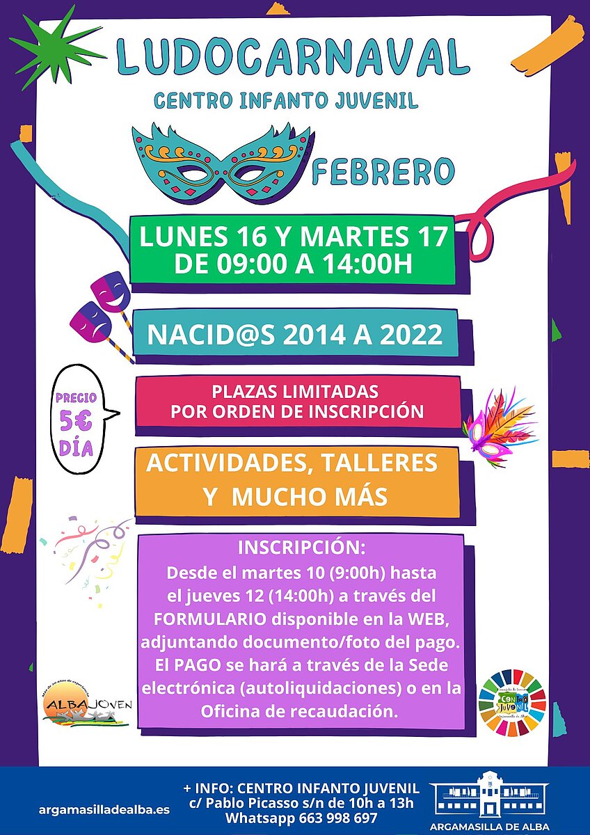 Durante el 16 y 17 de febrero, el Centro Infanto Juvenil acoge una nueva edición del Ludocarnaval, con actividades, talleres y muchas sorpresas para disfrutar del Carnaval.