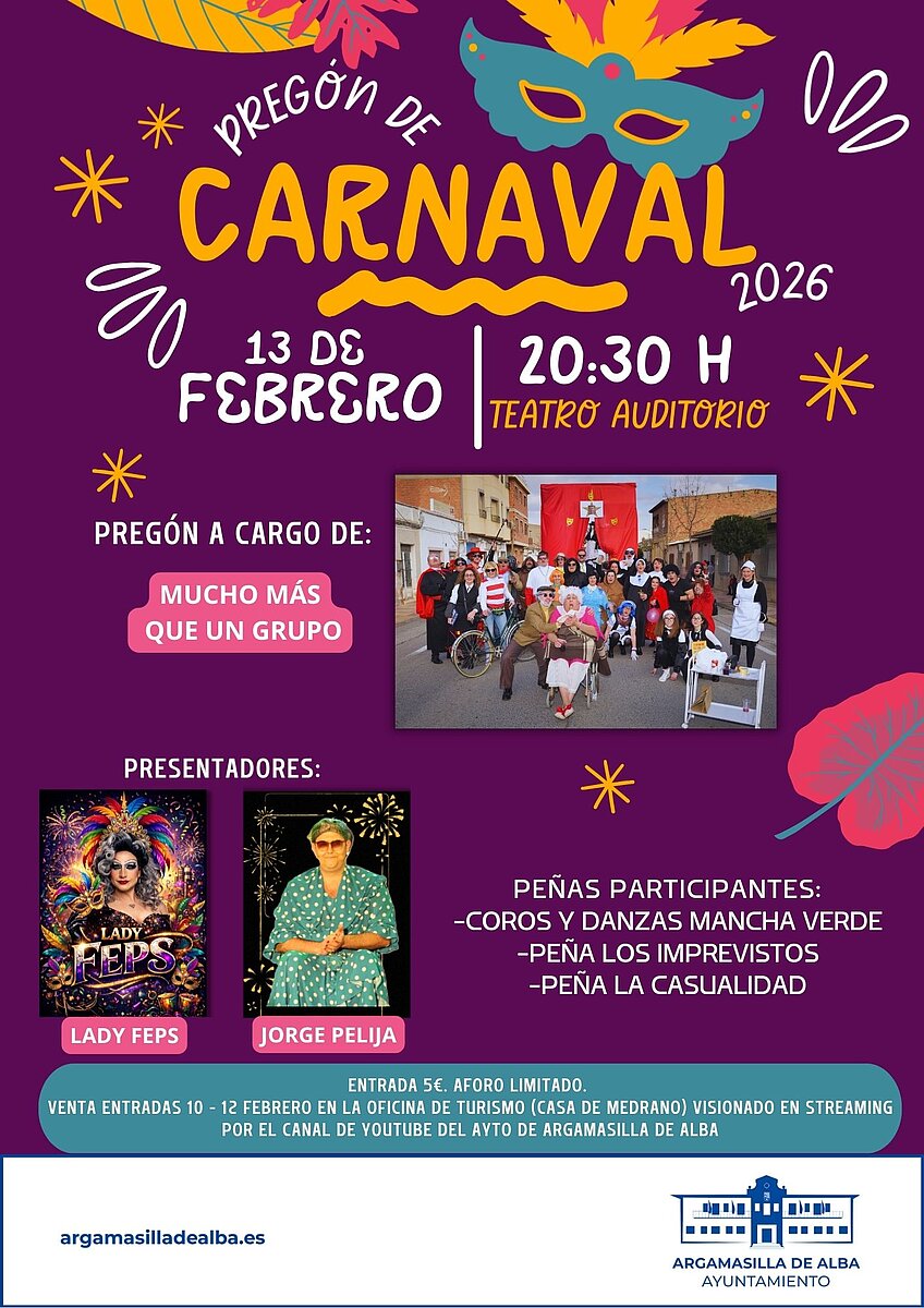 Venta de entradas: del 10 al 12 de febrero, en la Oficina de Turismo (Casa de Medrano).