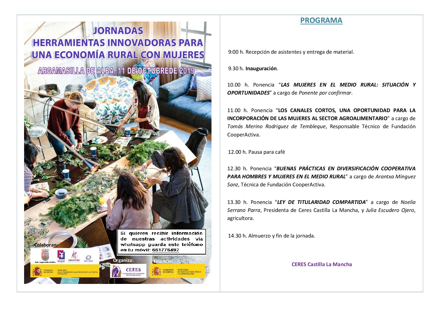 Actividades programadas desde el Área de la Mujer durante el mes de octubre de 2019 con motivo de la celebración del Día Internacional de la Mujer Rural. Además, con motivo del día de la salud mental, la residencia "La Vereda" organiza un videoforum en el Salón de Actos del Centro Social. Día: 10 de octubre a las 17:00 horas.