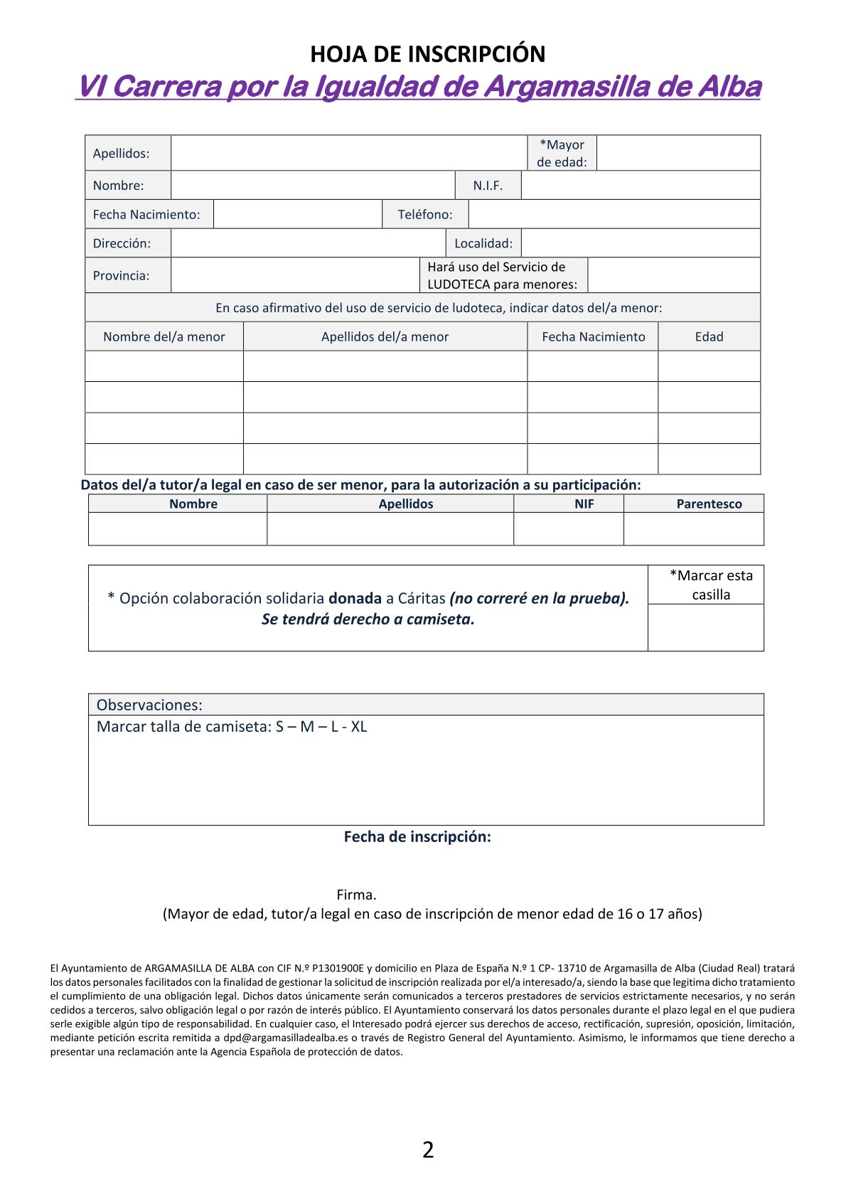 La hoja de inscripción cumplimentada y el justificante de pago se podrá presentar en el Centro de la Mujer antes del 31 de mayo, o también a través del correo centromujer@argamasilladealba.es o del WhatsApp 661 776 492.