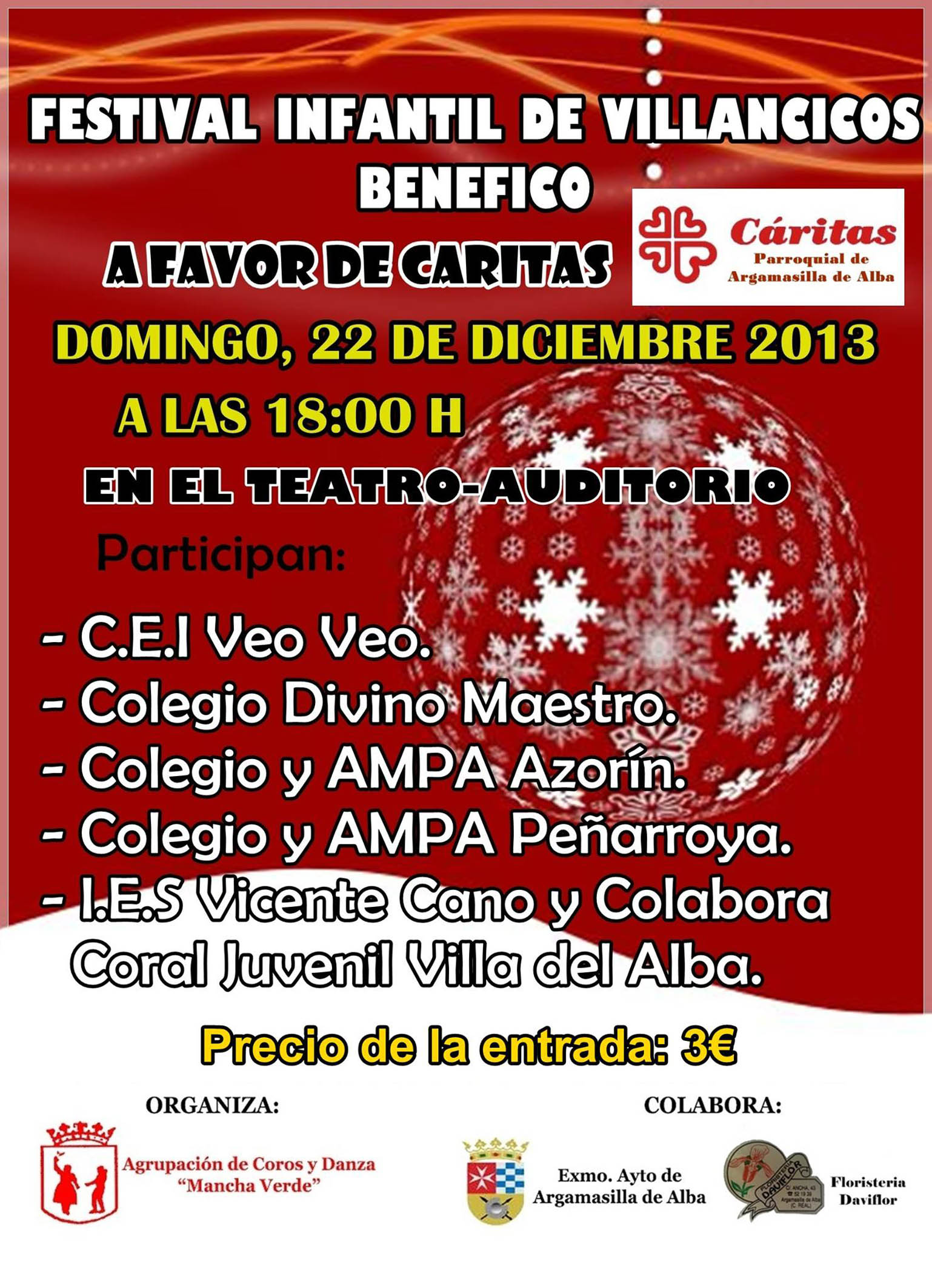 La taquilla del acto se donó integra a Cáritas de Argamasilla de Alba, que la destinará a los afectados por el tifón Yolanda en Filipinas