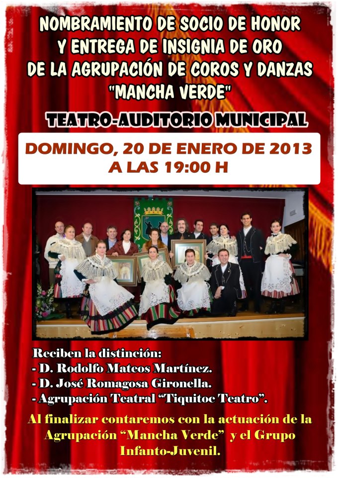 Rodolfo Mateos Martínez, José Romagosa Gironella y Tiquitoc Teatro nombrados socios de honor de la agrupación folklórica argamasillera
