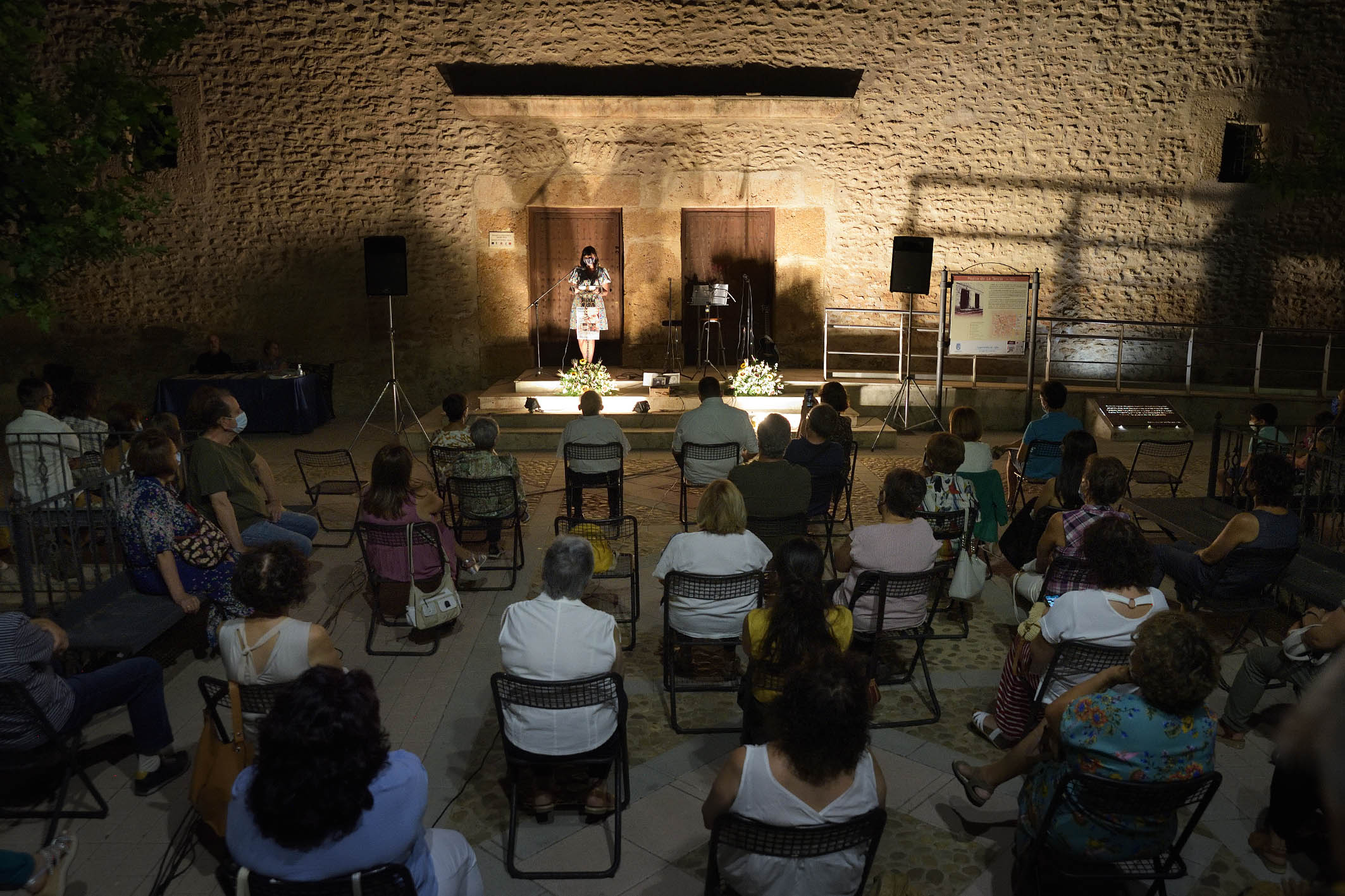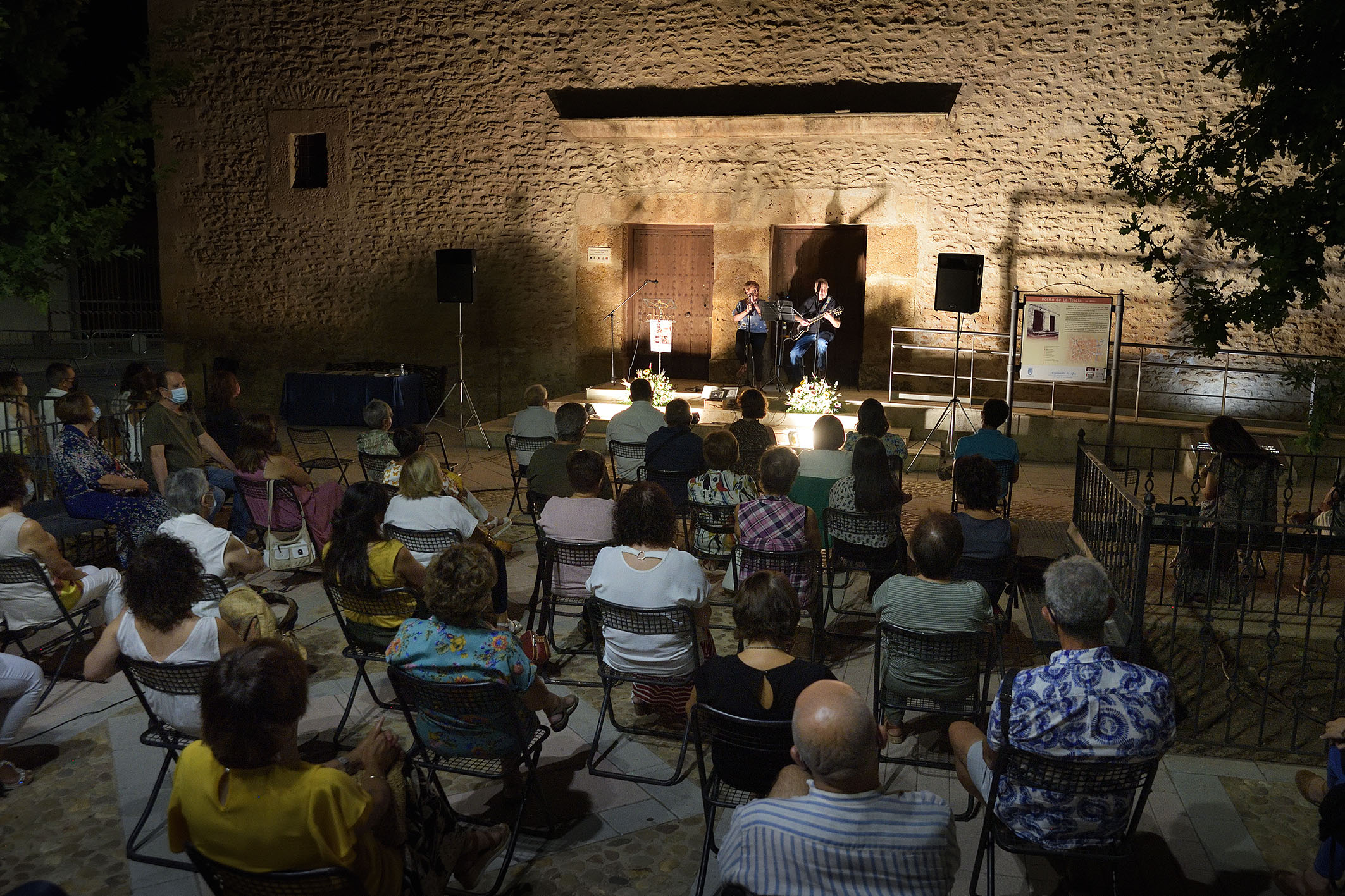 Las noches de verano son muy propicias para disfrutar al aire libre de la poesía, la buena temperatura junto al sonido de las hojas de los árboles cuando el viento las hace aletear y en algunos casos volar, crea una ambientación natural muy favorable, a la que se suma el gran decorado de la fachada del Pósito de la Tercia, una conjunción que permitió al Grupo Literario “Aldaba” retomar, con éxito de asistencia, el pasado sábado en la plaza del Marqués Casa Pacheco, el recital de Poesía A Pro-Pósito, suspendido el pasado año por la pandemia, y que este año, regresó con la aportación musical de los alcazareños Noviembre para homenajear a Luis Eduardo Aute.