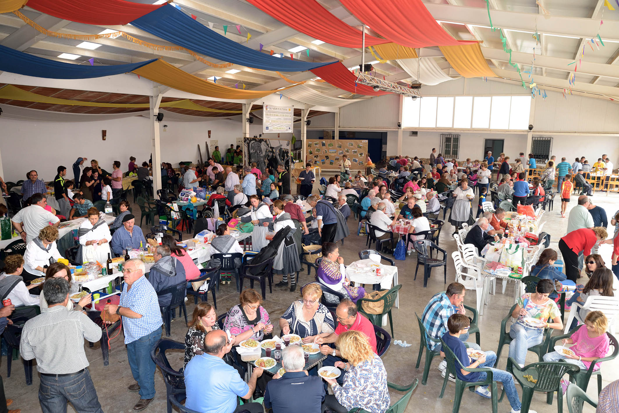 Como no todo el mundo tiene la destreza para hacer unas buenas migas, el Ayuntamiento, con la colaboración de los mayores del Hogar del Pensionista, que ejercieron de cocineros, preparó unas migas gigantes, con cerca de 200 panes, acompañadas de tocino, chorizo, uvas y tinto de verano para todos los visitantes por tan sólo 1 euro, que en esta edición se destinó íntegramente a la Asociación Española de Lucha Contra el Cáncer.