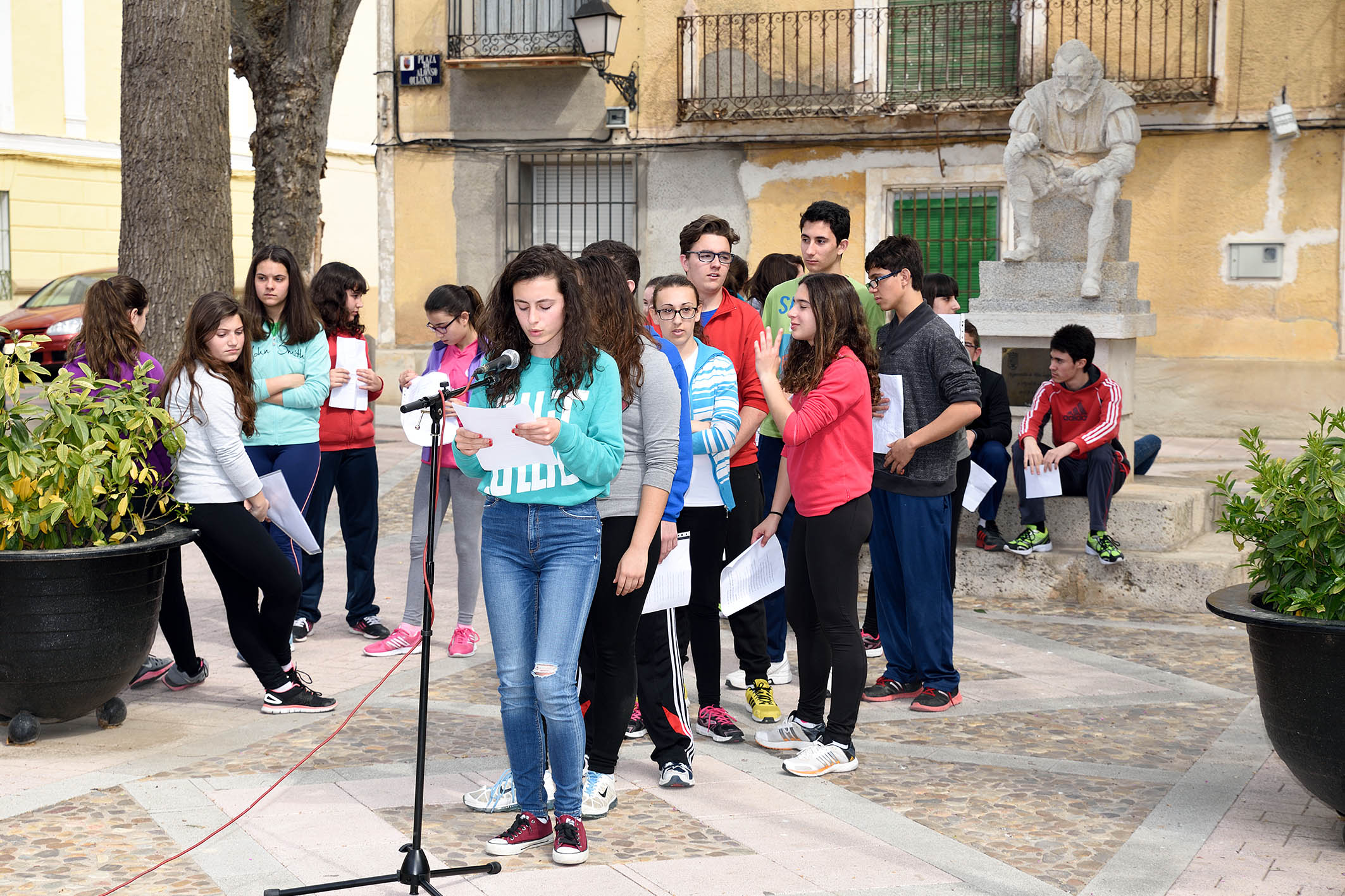 Alumnos del IES “Vicente Cano” y del CEIP Ntra. Sra. de Peñarroya han homenajeado este jueves 23 a Miguel de Cervantes, cuando se cumplen 399 años de su fallecimiento, en un acto organizado por la Asociación Cultural “Los Académicos de la Argamasilla” en colaboración con el Ayuntamiento de Argamasilla de Alba.