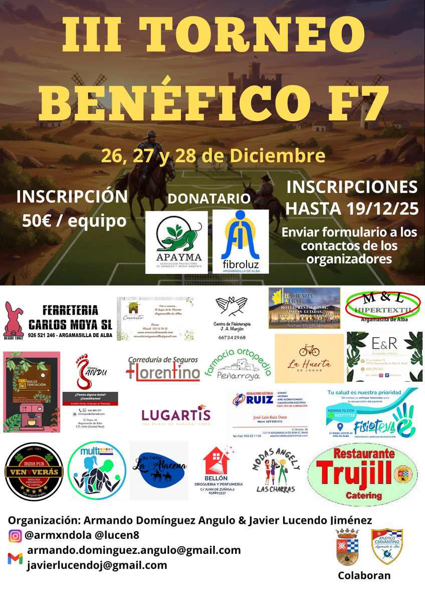 Organizado por Armando Domínguez y Javier Lucendo. Armando explicó que las inscripciones estarán abiertas hasta el 19 de diciembre con un coste de 50 euros por equipo. Además detalló que en esta edición se ha puesto el foco en reforzar el mensaje de juego limpio y no violencia, recordando que se trata de un torneo benéfico donde prima la convivencia sobre la competitividad. Además, se han aclarado aspectos de las bases relativos a clasificación y semifinales.