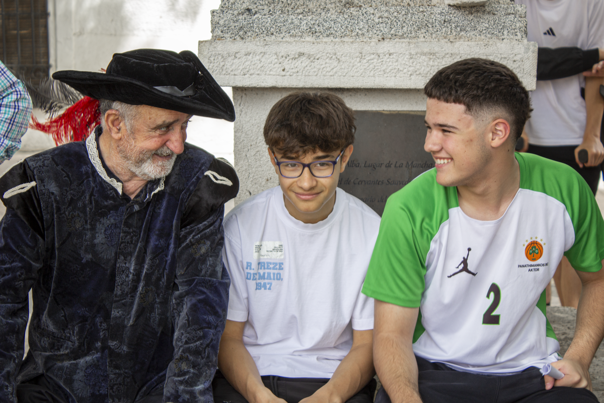 El acto contó con la participación de alumnos y alumnas del IES Vicente Cano, junto a la Asociación “Los Académicos de la Argamasilla”, y con la presencia del Bachiller Sansón Carrasco. Además, se colocó una corona de laurel en homenaje a Cervantes, en una jornada que unió literatura, historia y patrimonio.