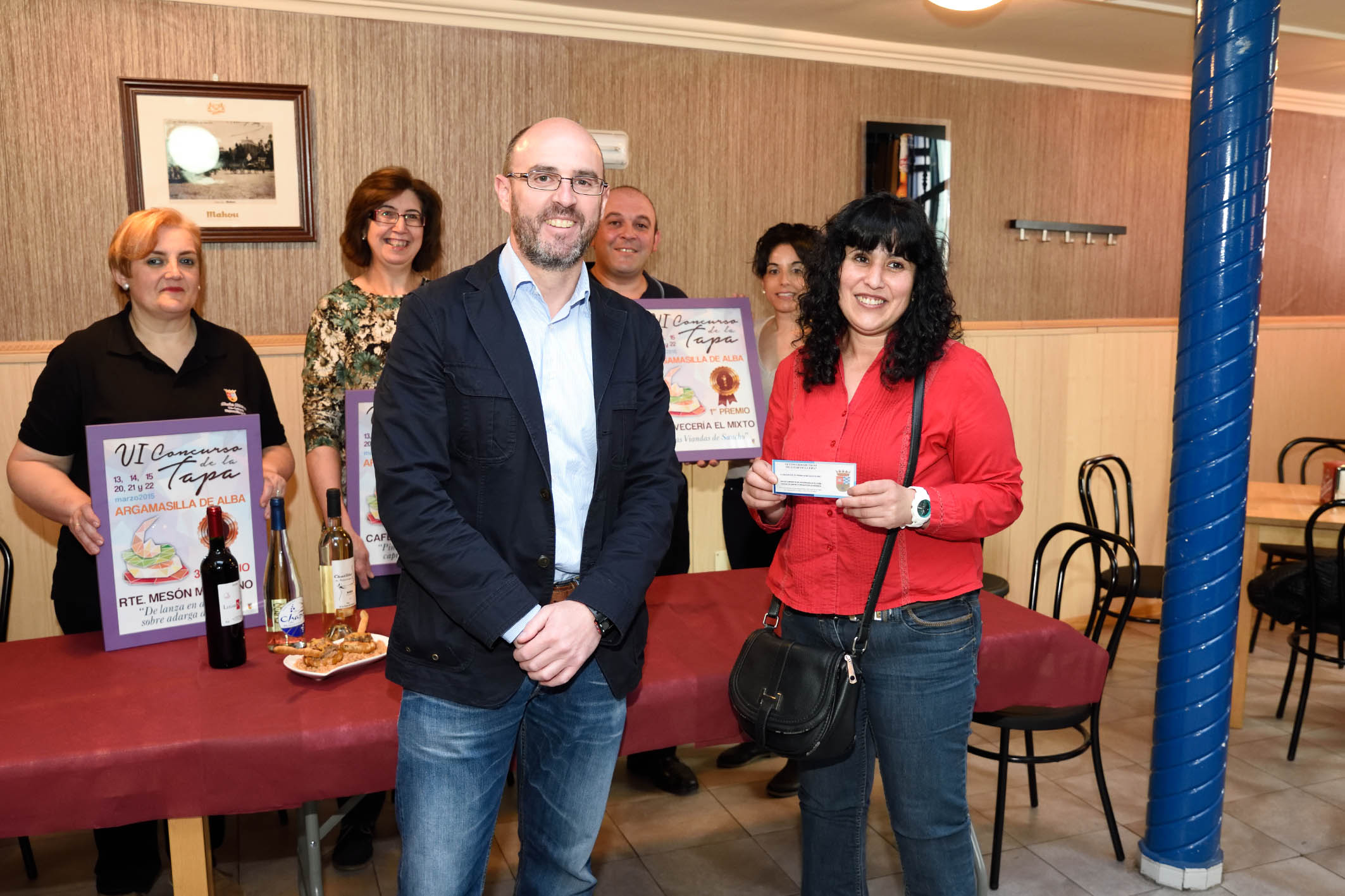 Este miércoles, 22 de abril, el alcalde de Argamasilla de Alba, Pedro Ángel Jiménez, ha entregado los premios del VI Concurso de Tapas “El lugar de la tapa”, que durante los fines de semana del 13, 14, 15 y del 20, 21 y 22 de marzo celebraron 19 establecimientos de la localidad, a través del Área de Empleo y Promoción Económica del Ayuntamiento.