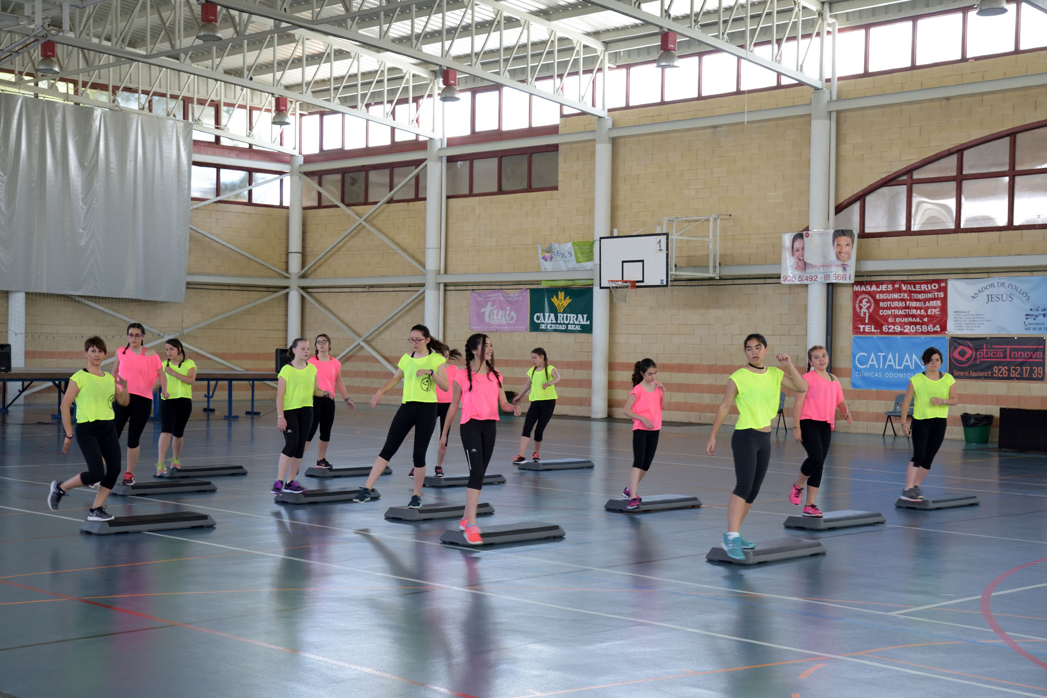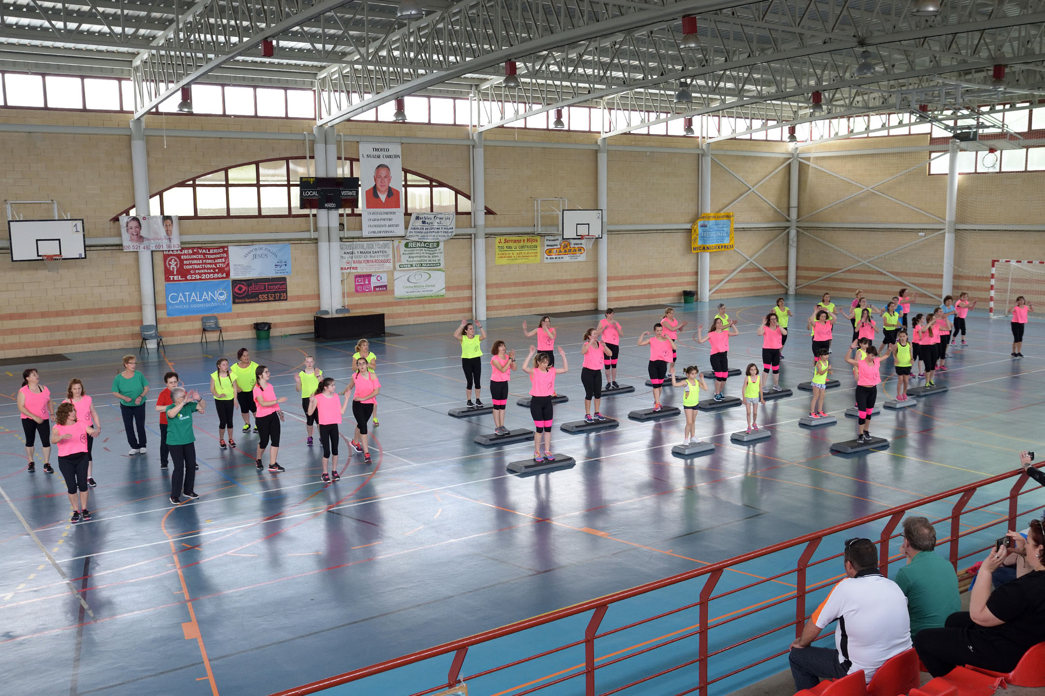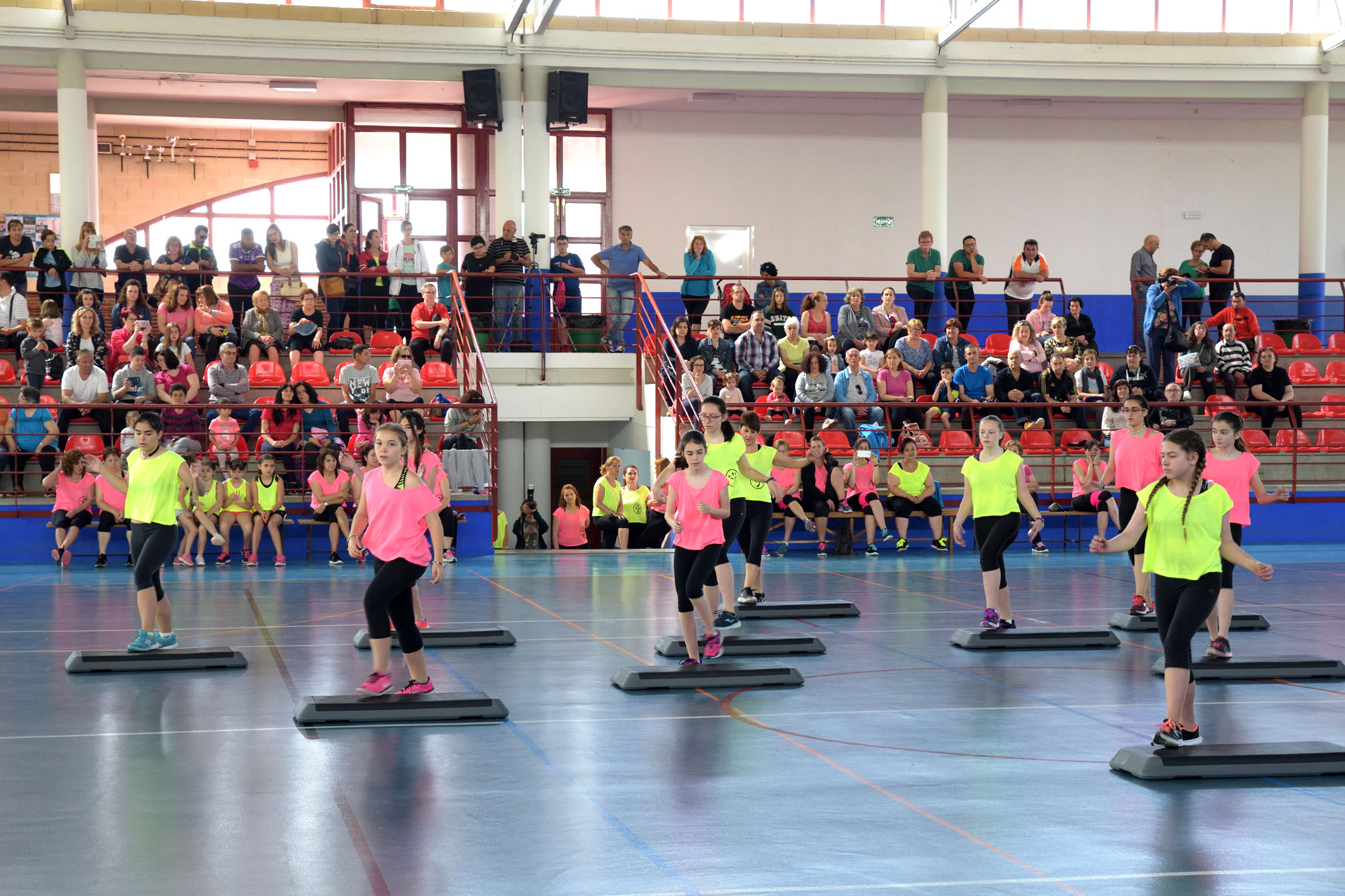 Divididos en diferentes grupos, las decenas de participantes demostraron su destreza practicando aeróbic escolar, step, aeróbic para todas las edades, gimnasia de mantenimiento y de mayores. En total fueron 12 las coreografías que pudieron verse, más la exhibición final por parte de todas las participantes.