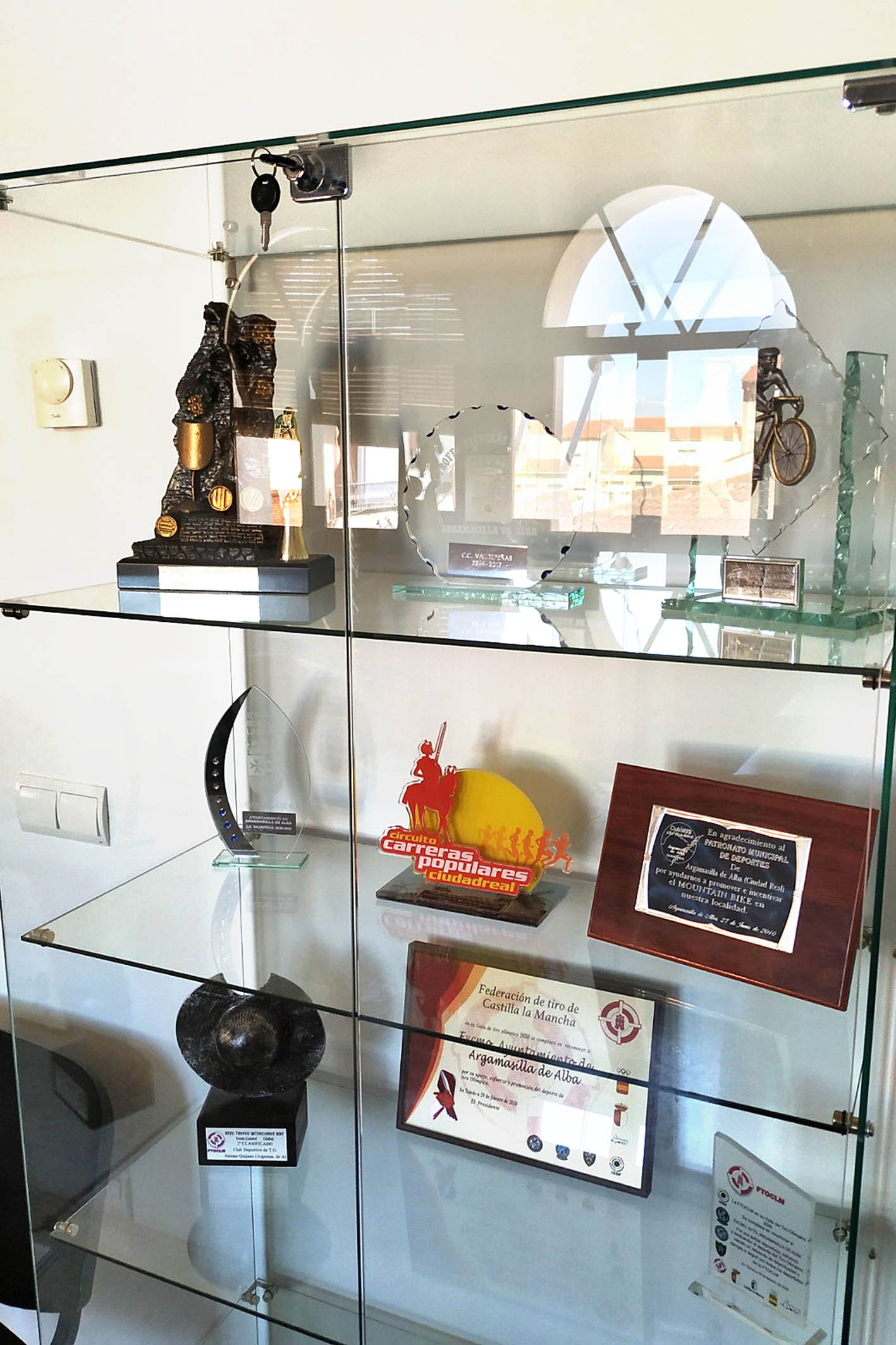 Al contar con mayor espacio y no estar compartido con otras áreas, se han podido reunir en este nuevo lugar artículos, trofeos y obsequios que los deportistas y equipos de la localidad han realizado al Ayuntamiento, los cuales se encontraban dispersos en diferentes dependencias del edificio consistorial. Obsequios y recuerdos como los realizados por el Cervantes C.F. tras el histórico ascenso en la temporada 2012-2013 a Primera Autonómica Preferente, los maillots de los ciclistas Vicente García de Mateos e Isaac Cantón; así como trofeos de instituciones, organizaciones y clubes de diferentes disciplinas deportivas, como la Federación de Tiro de Castilla-La Mancha, el Circuito de Carreras Populares de Ciudad Real o el Club Ciclista Valdepeñas, en reconocimiento y agradecimiento por el apoyo y promoción de la práctica deportiva.