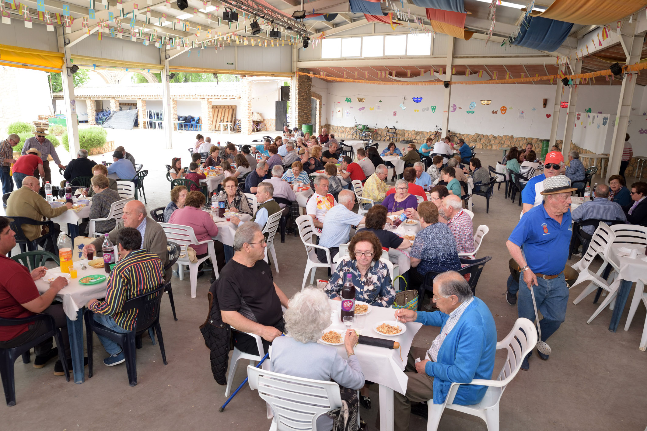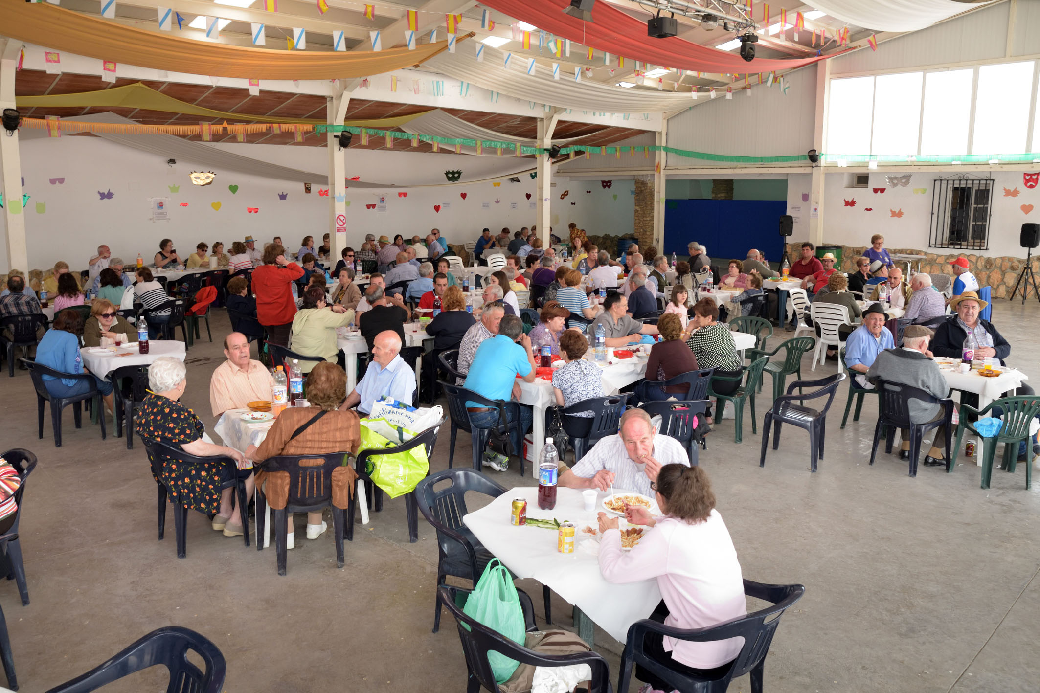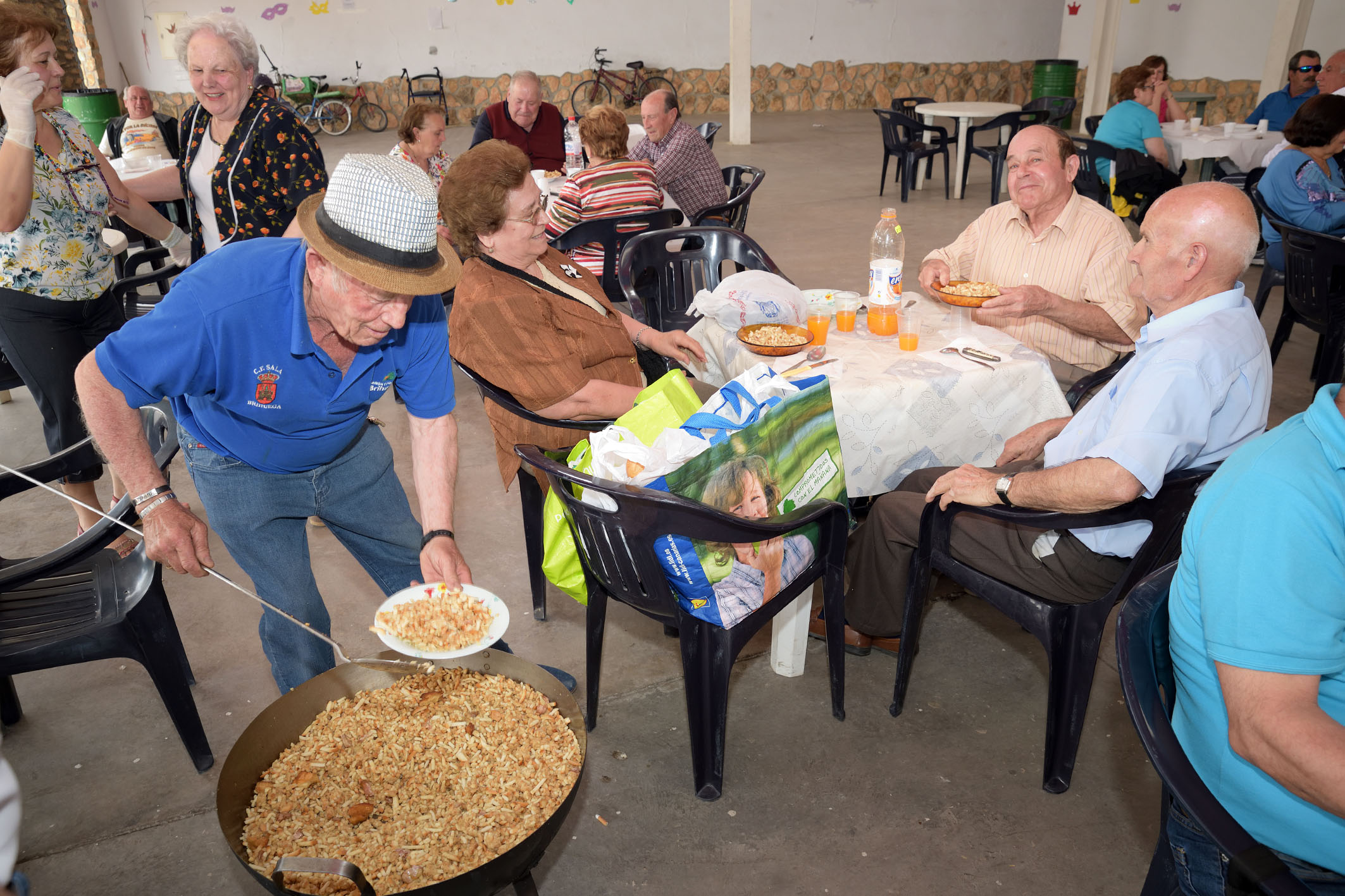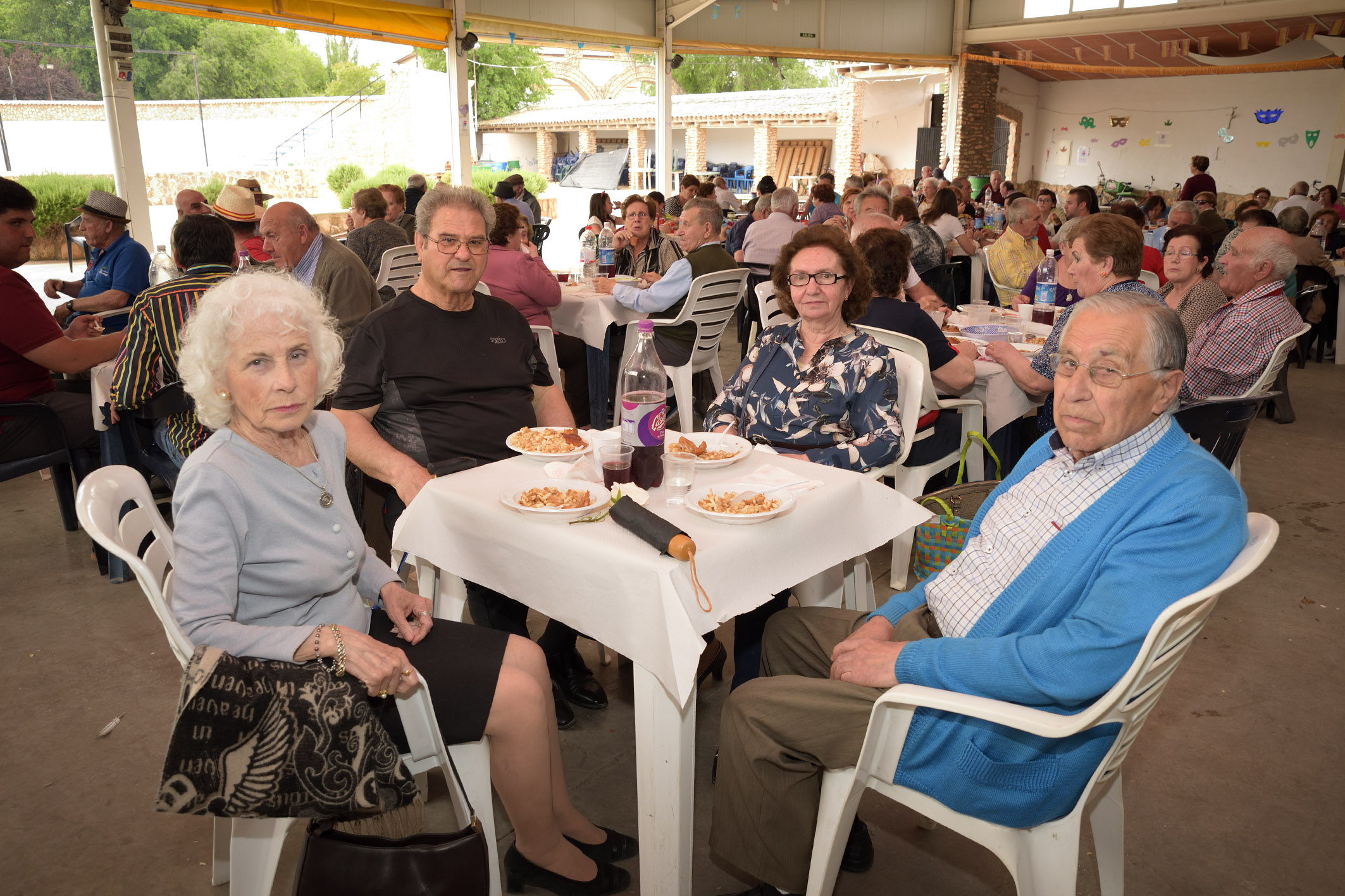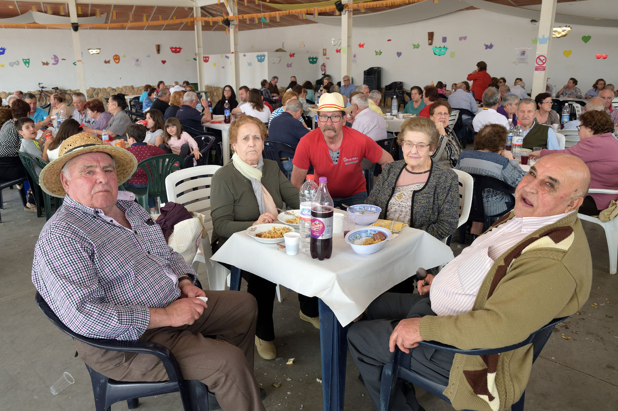 Como no podía ser de otra forma, San Isidro hay que celebrarlo con una comida tradicional de los trabajadores del campo manchego, y junto a las gachas, las migas es el alimento que nunca faltó, en muchos casos por escasez de otros, en el menú de los agricultores de antaño. Por ello, el centro organizó esta comida con migas, regadas con sangría, en la que se cocinaron 37 panes y cuyos cocineros, de cinco sartenes, participaron en un concurso donde el jurado tuvo muy difícil la elección, decantándose finalmente por las de Julián Cañas.