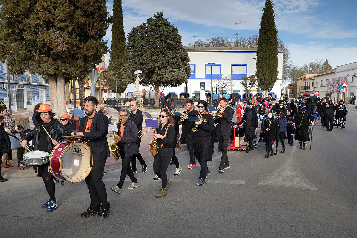 “Después de dos años esperando para celebrar el carnaval, ahora que por fin ha llegado se ha ido la agüela, así… de repente”, afirmaba una de las apenadas nietas, integrante del numeroso cortejo fúnebre que ha despedido este miércoles de ceniza a la sardina por Argamasilla de Alba, un recorrido que se ha hecho mucho más llevadero gracias a la Charanga Metálica, que ha ambientado musicalmente este triste día para las nietas, viudas y demás familiares.