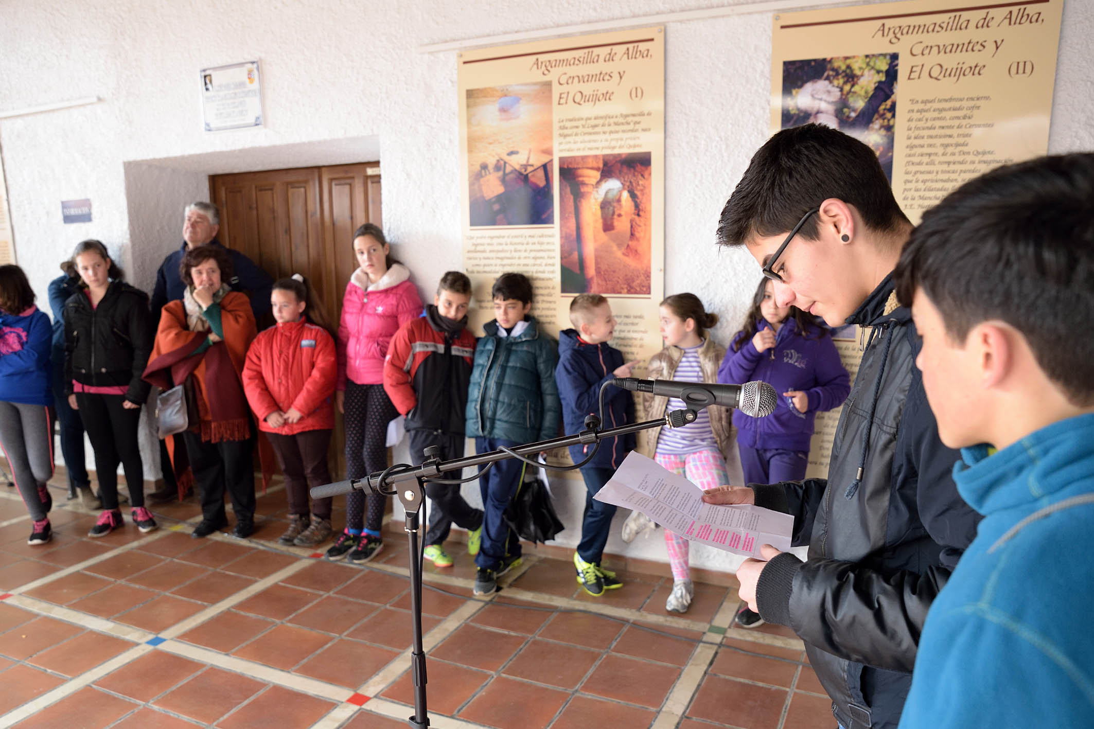 Organizado por la Asociación Cultural “Los Académicos de la Argamasilla” y el Área de Cultura del Ayuntamiento, dentro de las Jornadas Cervantinas del mes de abril, los alumnos de 3º de ESO y 4º, 5º y 6º de primaria han leído en la Casa de Medrano, frente a la puerta de la cueva que fue prisión de Cervantes, diferentes versos incluidos en las historias del hidalgo caballero, destacando en ellas, por la importancia para la localidad, los que puso en boca y pluma de los Académicos de la Argamasilla: “lugar de la Mancha, en vida y muerte del valeroso don Quijote de la Mancha, «hoc scripserunt»”.