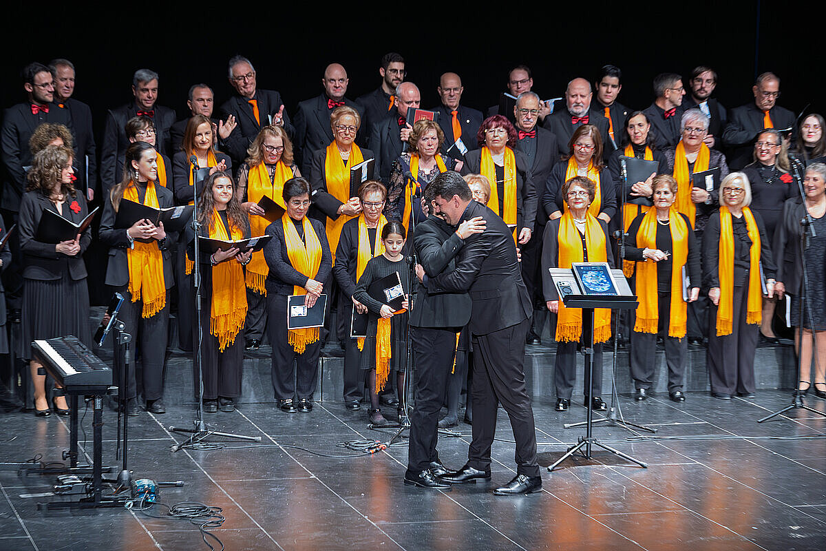 Para cerrar la velada, las dos corales unieron sus voces en una interpretación conjunta —muy aplaudida— que puso el broche final a una noche en la que la música volvió a demostrar su fuerza para emocionar, unir y ayudar.