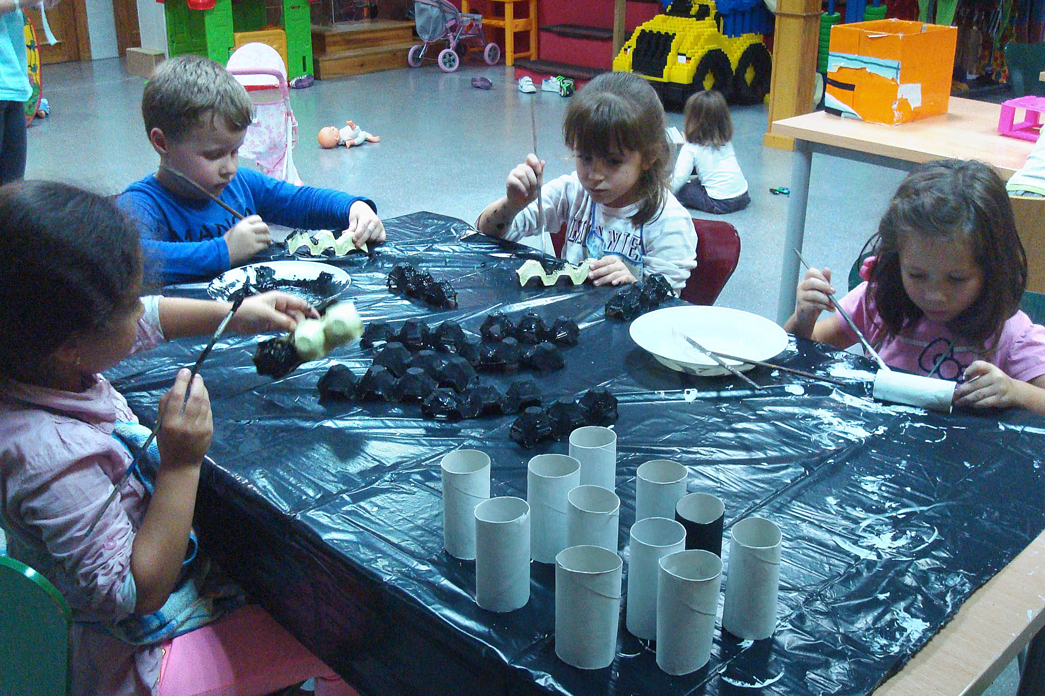 Para ello, el lunes, el martes y el miércoles, los usuarios de la Pequeteca lo dedicaron a decorar el centro con los tradicionales murciélagos, calabazas, calaveras, fantasmas, brujas, etc., además de construir con hilos y cartones sus propios móviles de fantasmas y murciélagos reutilizando hueveras de cartón y tubos de papel higiénico; culminando la semana con una fiesta de disfraces en la cual realizaron una gymkhana y el visionado de varios cortos de animación sobre esta fiesta.
