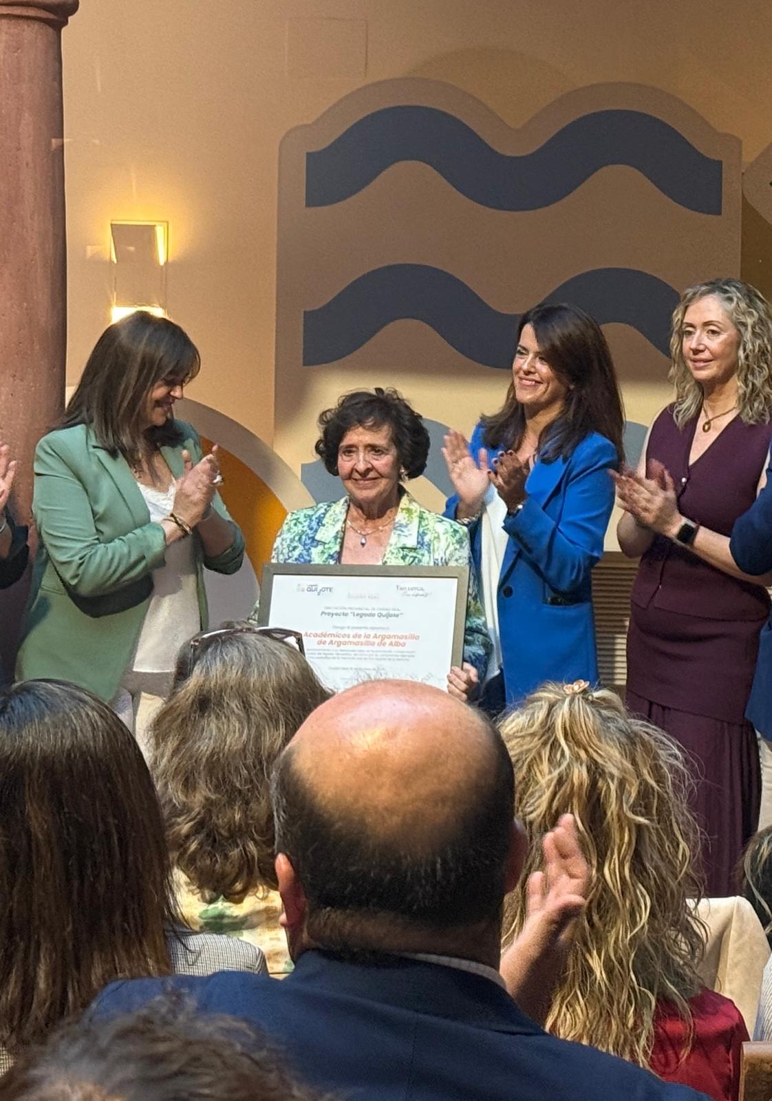 Junto a Pilar Serrano de Menchén, recibieron su galardón los miembros de la junta directiva de los Académicos de la Argamasilla: Obdulio Hilario, María Teresa Moya Díaz-Pintado, José Valverde, Pablo Martín y María Pilar Menchén Serrano, quienes representaron con orgullo a Argamasilla de Alba, cuna de Cervantes y del Quijote.