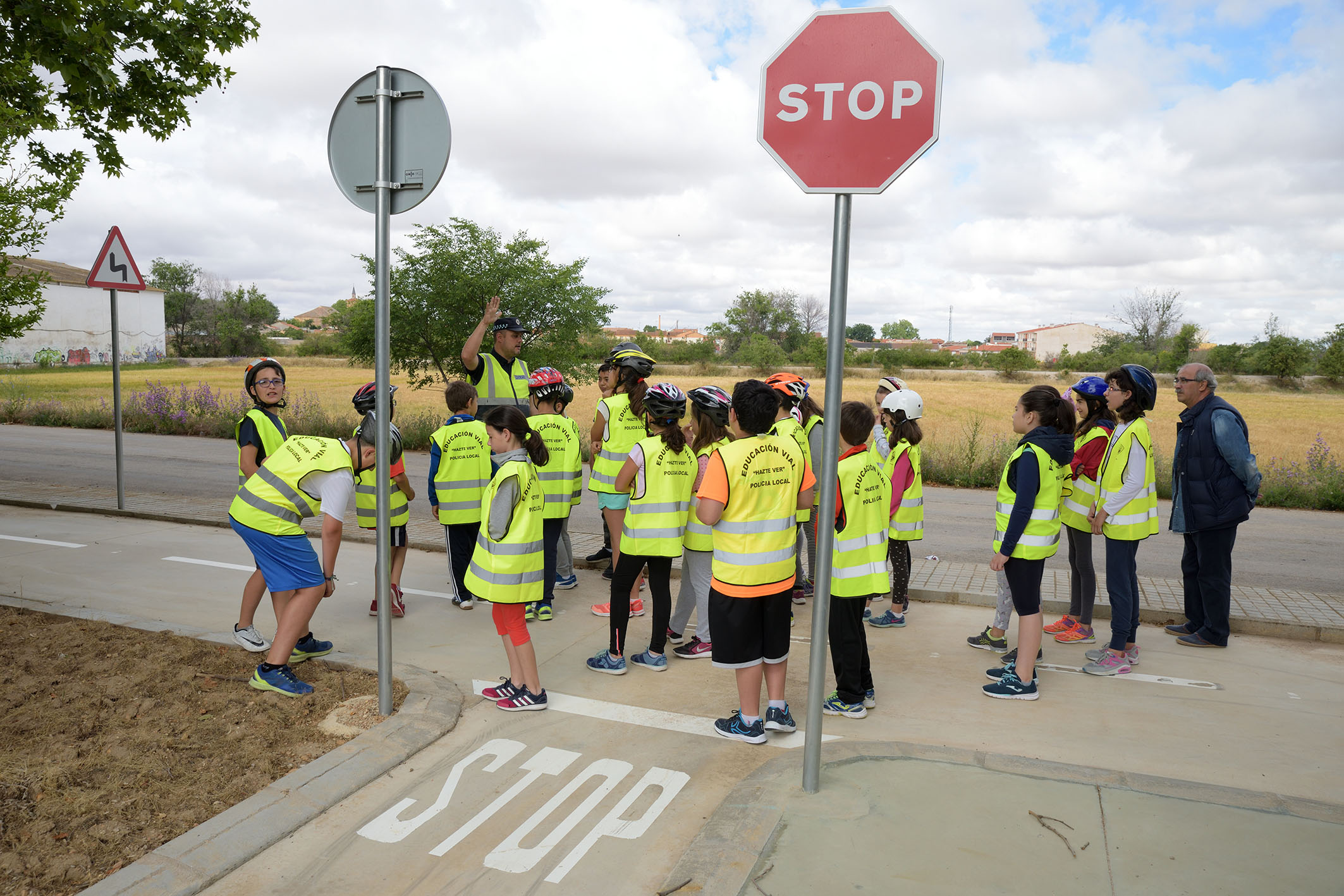 Cabe destacar, en las clases prácticas, la participación de los miembros de Protección Civil de Argamasilla de Alba, colaborando con los agentes en la seguridad de los chicos y chicas.