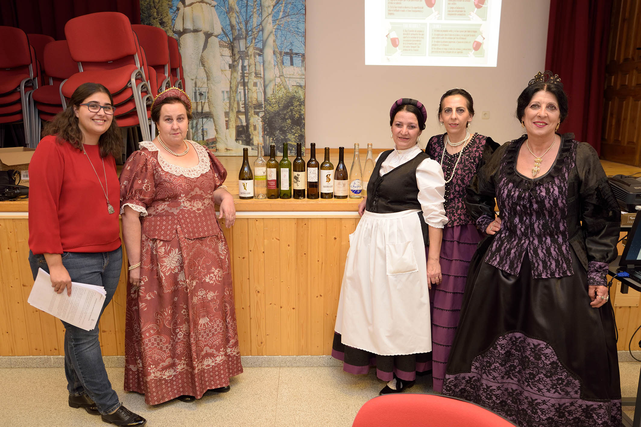 Los vinos fueron servidos por unas particulares “aldonzas”, componentes de la Agrupación de Coros y Danzas “Mancha Verde”, ataviadas para la ocasión con trajes del siglo XVI, acorde con los actos de conmemoración del IV Centenario de la muerte de Cervantes organizados para este año en la localidad.
