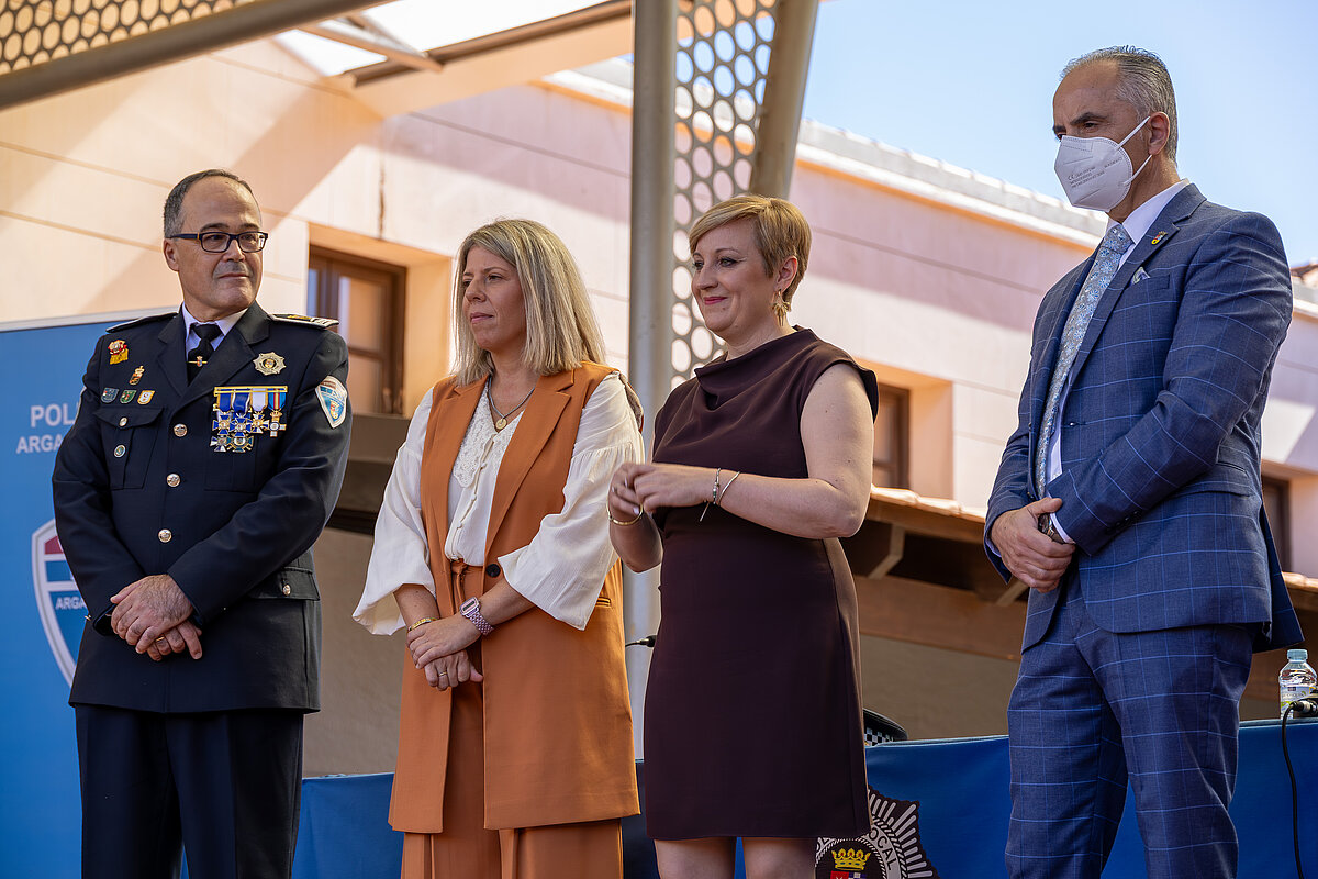La alcaldesa Sonia González cerró el acto con un emotivo discurso de reconocimiento la labor de los agentes y de Protección Civil. Subrayó que la seguridad ciudadana “no solo consiste en hacer cumplir la ley, sino en formar parte de la vida cotidiana del pueblo”. La alcaldesa anunció además diversas mejoras y proyectos municipales, entre ellos la finalización del nuevo Centro Integrado de Seguridad, la ampliación del sistema de videovigilancia, la incorporación de tecnología innovadora para el control del tráfico, la dotación de desfibriladores semiautomáticos en las patrullas, y la nueva ordenanza de movilidad ciclista y de vehículos de movilidad personal.