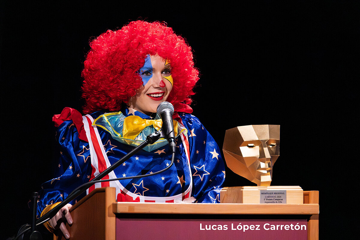 La concejala de festejos, Clara Hilario, apareció disfrazada de payaso para reivindicar un carnaval que permite "quitarse el disfraz social". Agradeció el trabajo de todo el "engranaje" municipal y destacó el arte local presente en los trofeos diseñados por Ana Belén Valverde.