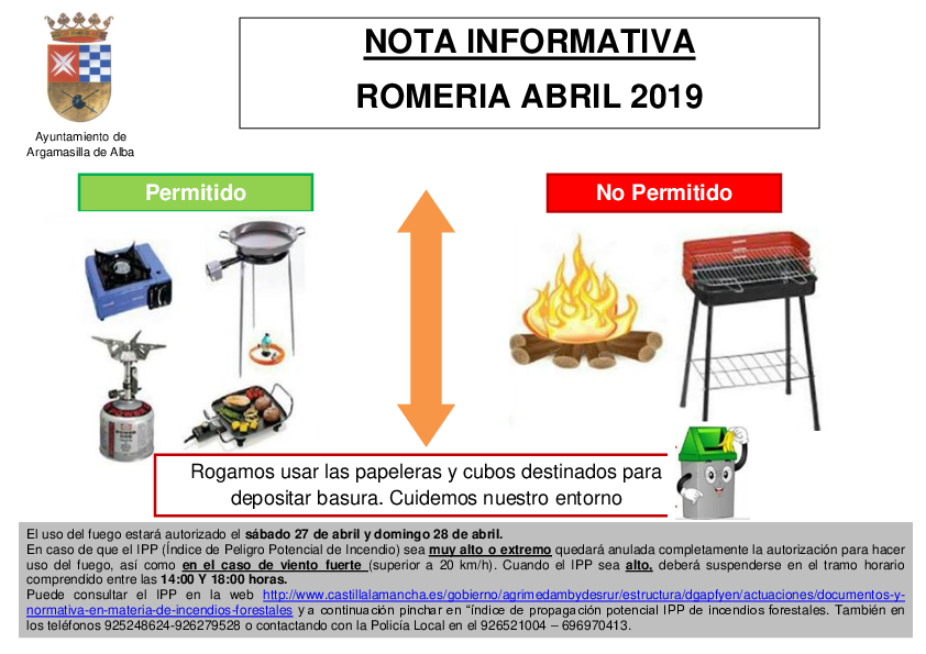 El Ayuntamiento informa sobre los hornillos, planchas, etc. que se pueden utilizar para hacer la comida durante la próxima romería.